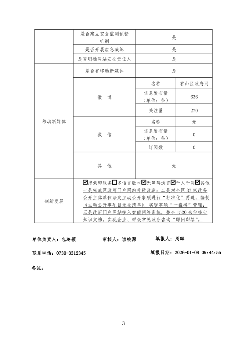 2025年度君山区政府网站工作年度报表