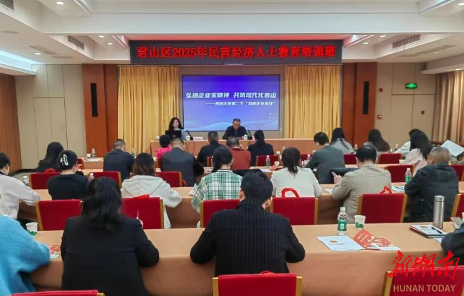 当日下午,君山区2025年民营经济人士理想信念教育培训在区文化活动中心接续举行,约60名民营企业家及商会协会代表参加。培训课程聚焦企业家关切,特邀市委党校经济学副教授刘岚丽就“稳中向好的中国经济”进行宏观解读,帮助企业家把握发展大势。