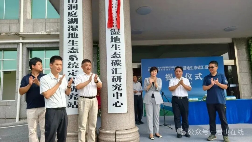 2024年8月30日,全国首个淡水湿地生态碳汇研究中心在君山揭牌成立,中国科学技术大学地球和空间科学学院与君山区人民政府签订共建框架协议。