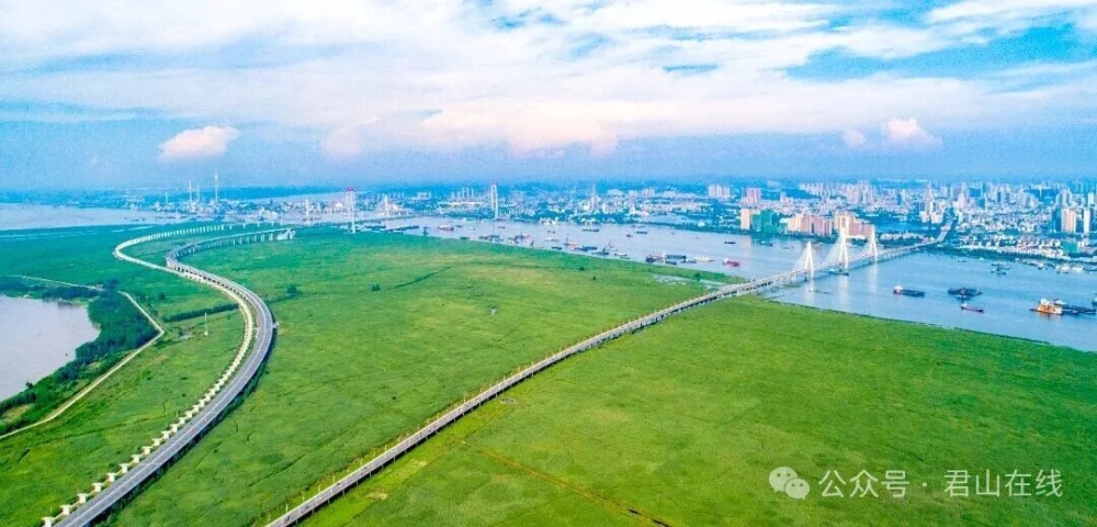 1996年12月19日,洞庭湖大桥开工建设。2000年12月26日,这座全长5748米的跨湖大桥正式通车,将君山至岳阳主城区的车程从数小时缩短至20分钟,彻底结束了君山“湖中孤岛”的历史。桥通了,路也跟着延伸。2011年12月10日,洞庭大道君山段提质改造工程全面竣工,这条全长5240米的城市主干道拓宽至80米,成为联系君山与岳阳主城区的景观轴线。一条条宽阔的道路,让君山真正融入岳阳“半小时经济圈”。