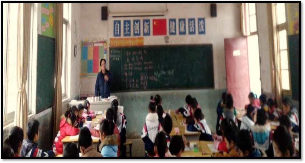 △教室黑板为普通黑板,有的还是水泥黑板,没有空调,普通日光灯泡。拍摄于2015年。