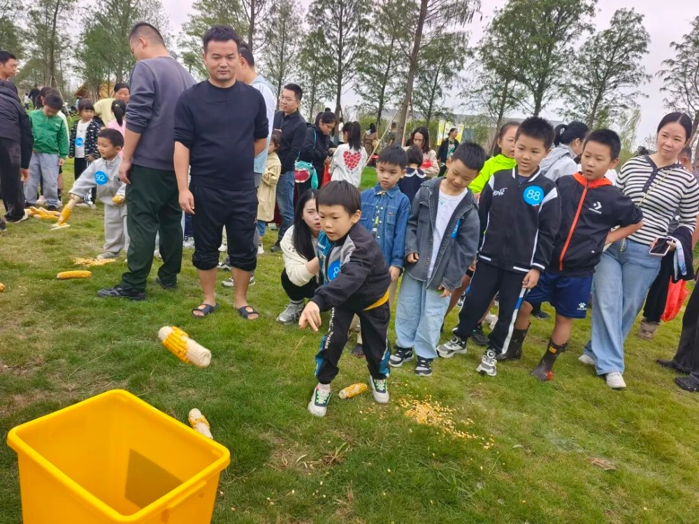 “玉米投手”赛场,小朋友们一个个聚精会神,手握金黄的玉米棒,瞄准前方的目标筐奋力投掷。“差一点!”“进了!”场边不断传来家长的鼓励和欢呼。有的孩子力道十足,玉米精准入筐;有的虽然投偏,却丝毫不气馁。每个孩子都全情投入,气氛欢乐