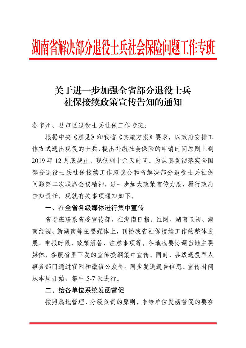 关于进一步加强全省部分退役士兵社保接续政策宣传告知的通知