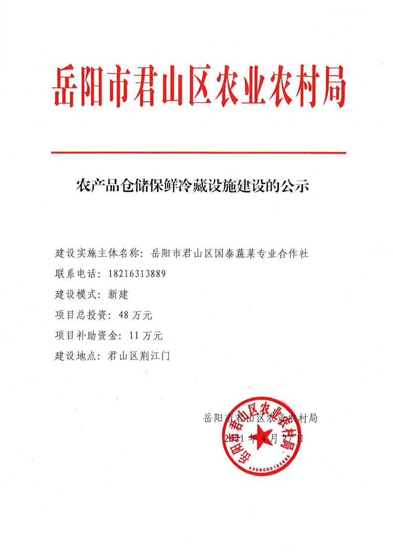农产品仓储保鲜冷藏设施建设的公示