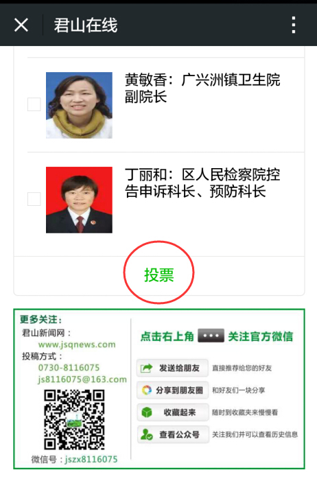 君山区“第三届十大道德模范”评选投票启动