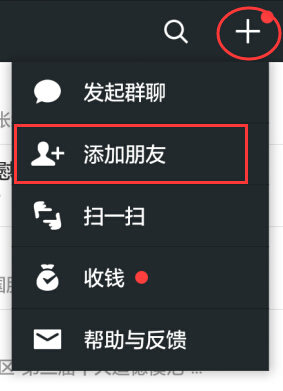 在微信中点击“+”添加朋友,