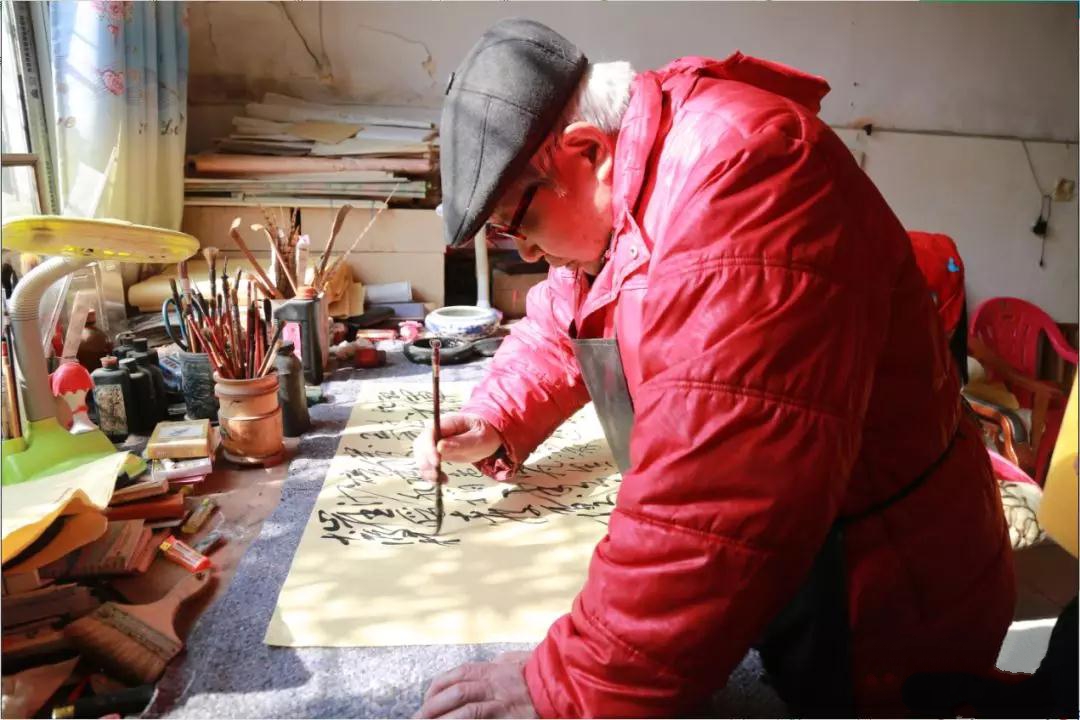 张剑雄老人生于1933年,是原钱粮湖农场的退休职工,从事多年的宣传工作,在美术、书法方面都有不俗造诣,曾多次在全国大型书画艺术大赛、海峡两岸文化交流大赛中获奖。他不但能写能画,还能唱,即使85岁高龄,开嗓比小伙子还要响亮。他这一辈子,都将自己的时间精力奉献在党的宣传事业上,并为当地的宣传工作培养了许多美术、书法人才。