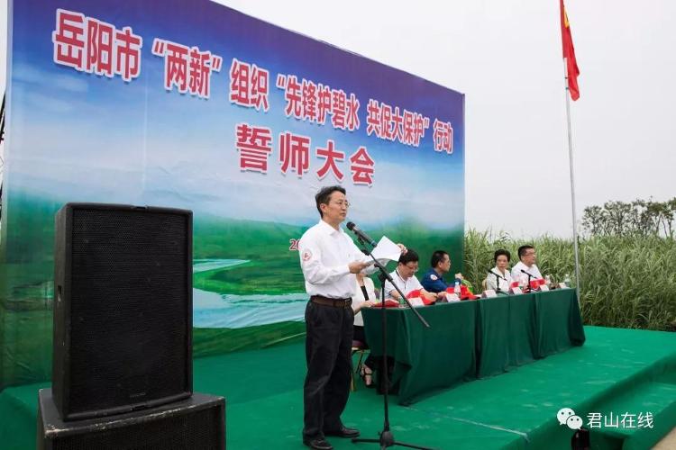 青青芦苇荡,浩浩长江水。6月5日,岳阳市“两新”组织在君山区长江华龙码头湿地召开“先锋护碧水共促大保护”行动誓师大会。省委“两新”工委专职副书记罗缵吉,市委常委、组织部长王瑰曙,区领导李勇、白再兴、傅大斌及岳阳楼区、云溪区、临湘市、湘阴县等县市区代表参加。