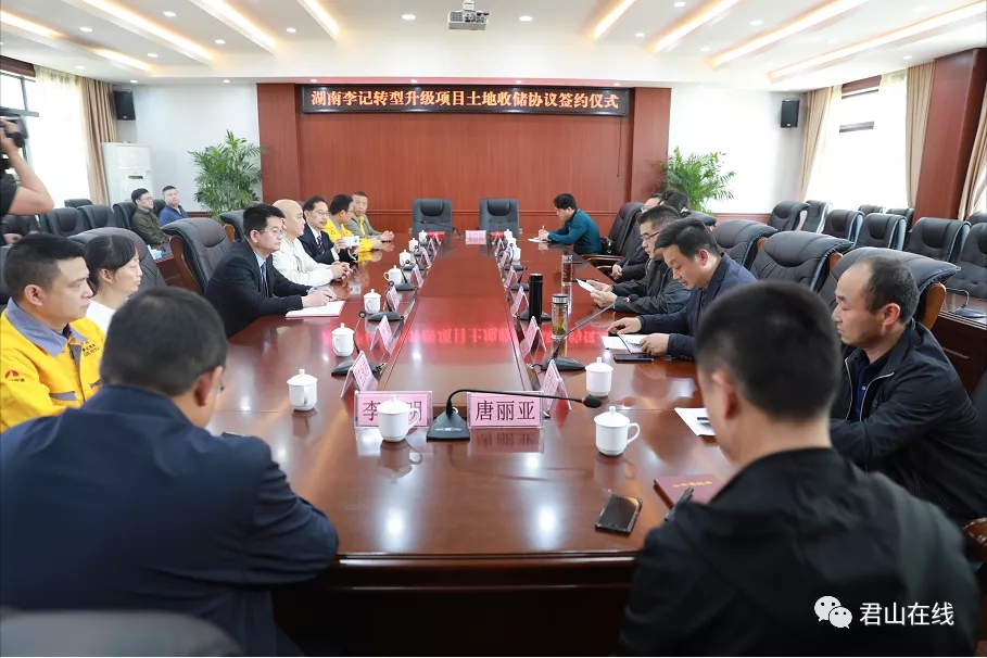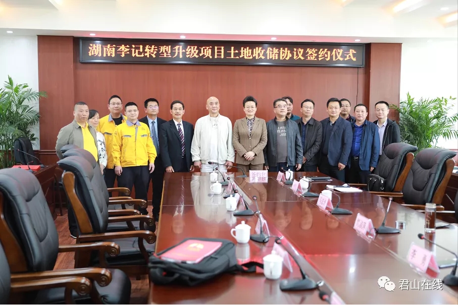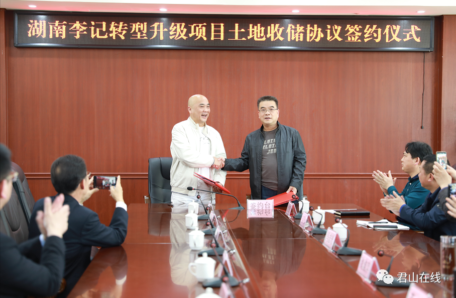 4月9日,君山区与李记食品签订转型升级项目土地收储协议,区委书记魏淑萍出席签约仪式并讲话,区委副书记、区长李勇与湖南李记食品有限公司董事长李国斌签订转型升级补充协议,区领导马志光、吴国良参加。