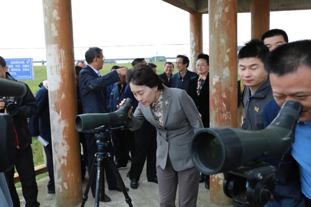 来到采桑湖,李爱武一行实地察看观鸟设施现场、环湖游游步道、观鸟屋等建设情况。她要求,要强化人与自然和谐共生的生态理念,进一步充分论证、严谨把关,科学推进观鸟平台规划建设,打造候鸟栖息的乐园,守护好洞庭湖湖独一无二的生态资源。