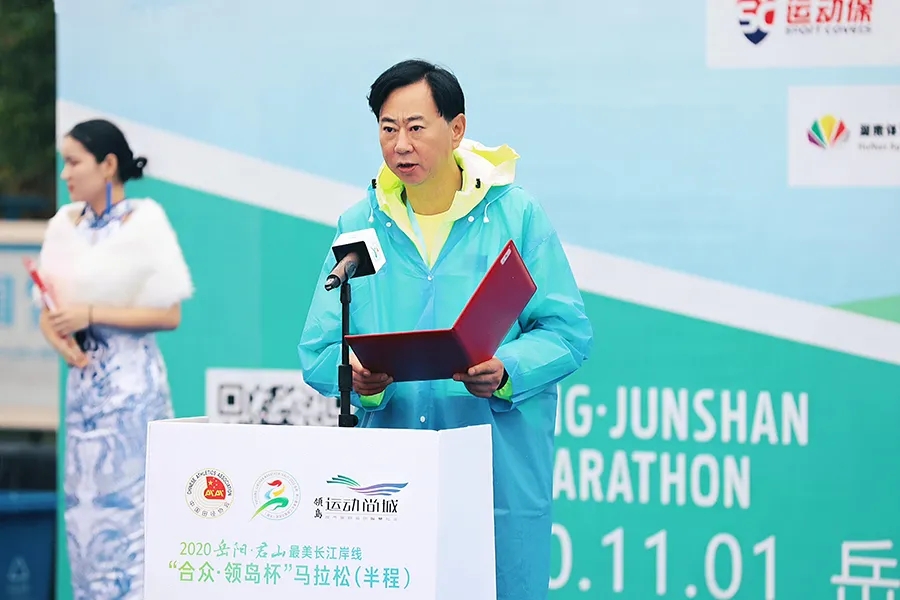 李爱武在致辞中表示,近年来,岳阳市严格践行习近平总书记“守护好一江碧水”的生态文明思想,扛牢“守护好一江碧水”首倡地的责任,积极推动长江大保护工程。通过此次马拉松赛,将岸芷汀兰,郁郁青青的最美长江岸线呈现给大家,期待本次赛事能够进一步推动“生态优先,绿色发展”成为大家共同的价值追求。并以此次活动为契机,持续掀起全民健身的新高潮,持续提升人民群众幸福感,把岳阳打造成为一个充满生机与活力的健康之城、幸福之城。