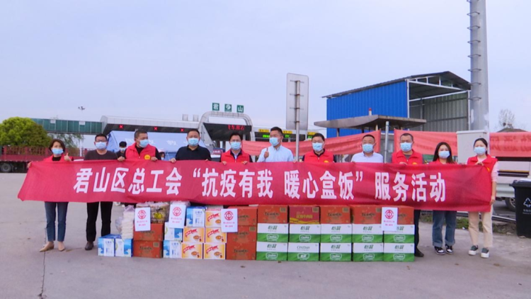 4月6日,区委常委、组织部长、总工会主席罗锋带队,开展“抗疫有我·暖心盒饭”服务活动,为一线疫情防控点的工作人员送去慰问物资,区总工会相关人员参加。罗锋一行先后前往区疾控中心、杭瑞高速君山路口,为防疫一线工作人员送去爆炒鸡丁、辣椒炒肉丝、清炒时蔬、牛奶、八宝粥等物资,帮助解决他们的就餐、饮水等生活保障问题,罗锋向所有坚守岗位的工作人员致以诚挚问候,感谢他们为疫情防控工作所作出的贡献。他强调,疫情防控工作任务艰巨,一线工作人员在做好疫情防控工作的同时,也要做好个人自我防护;坚持就是胜利,精准就是胜利,希望大家能够认真站好每一班岗,切实筑牢疫情防控坚实防线,全力保障人民群众生命健康安全。