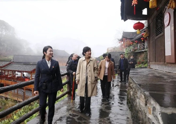 “高峰期的入住率有多少?有多少名管理人员?……”十八洞村悬崖酒店是搭建在十八洞村山路旁的装配式酒店,共18间客房,配套有水吧、会客厅、餐厅等。雷欣沿着山崖栈道,走进一间间客房,实地察看建筑结构,详细了解酒店运营模式、经营成本,并就君山文旅民宿规划与随行人员展开交流,她强调,要充分借鉴十八洞村悬崖酒店的优秀经验,立足君山特色,强化运营管理,着力完善细节,优化配套设施,做好“农文旅体”融合文章,打造精致精美的君山民宿群,以产业引领乡村全面振兴。