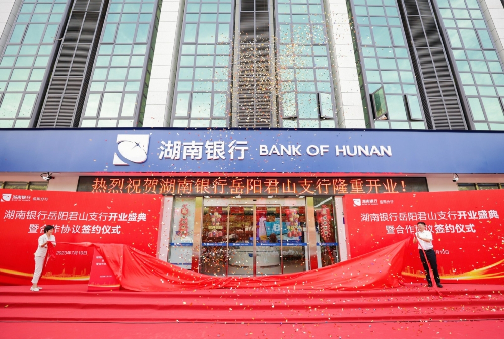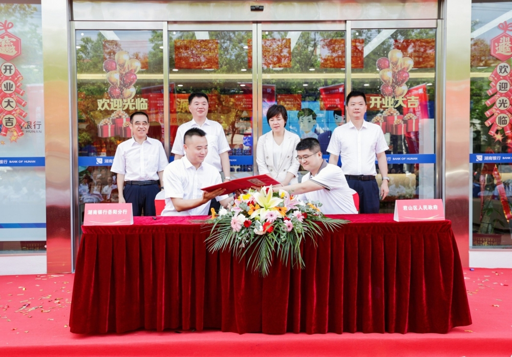 7月10日,湖南银行君山支行开业典礼暨战略合作协议签约仪式在区总部经济大楼前坪举行,区委书记雷欣与湖南银行岳阳分行党委书记、行长姜卫其共同揭牌,区委副书记、区长陈淼致词,区领导罗遥、沈澍、易俊良、朱旗、杨再兴及相关单位、企业代表参加。