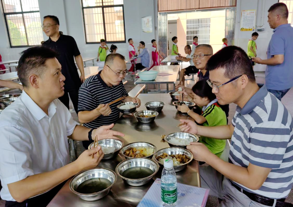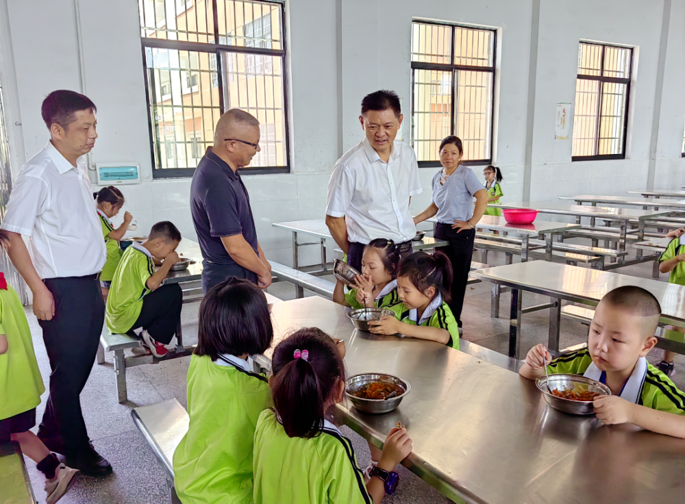 “学校的午饭好不好吃呀?”督查组一行与学生共进午餐,边吃边认真倾听孩子们对食堂管理的意见和建议,为“开学第一餐”护航。