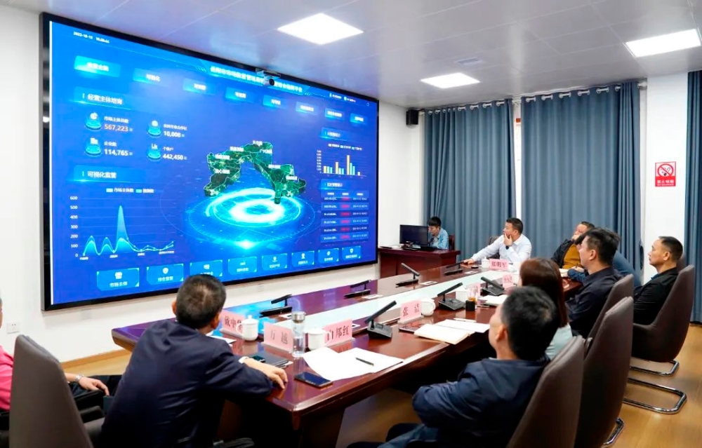 陈淼一行先后到联点企业湖南口水娃食品有限公司督导食品安全“两个责任”落实情况、区市场监管局观摩智慧监管平台现场演示和操作流程讲解。