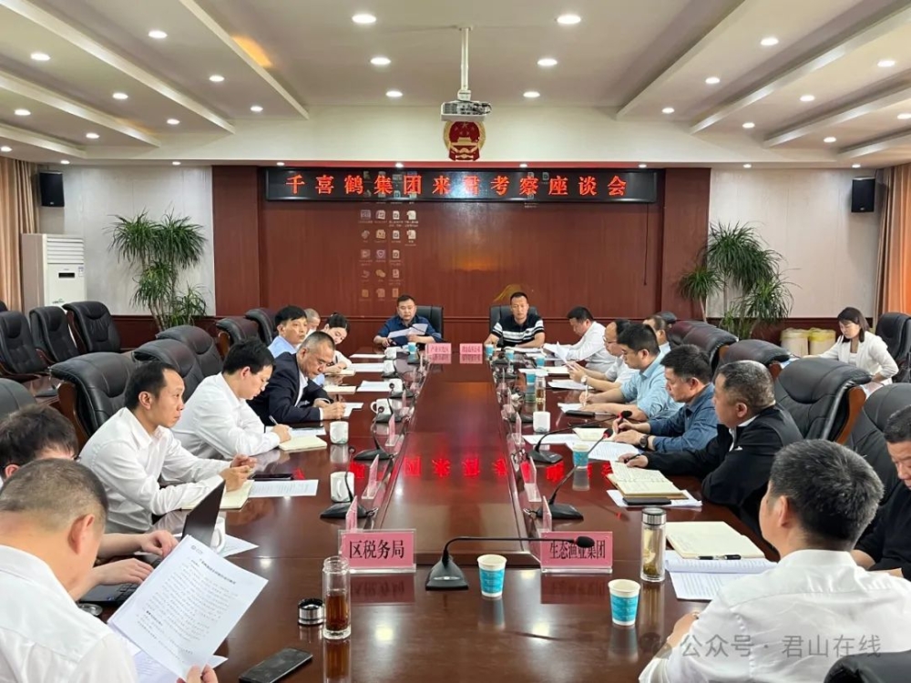 4月18日,千喜鹤集团副董事长刘正奎一行来区考察调研,区委常委、常务副区长沈澍,副区长虢汉平及相关单位负责人参加。