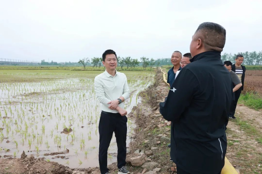 在柳林洲街道三家店村,陈淼深入田间地头,实地查看秧苗长势。