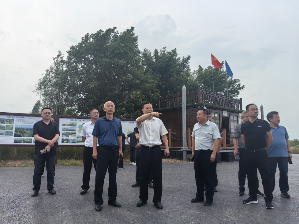 蒋丹平一行先后来到钱粮湖镇采桑湖渔场、柳林洲街道办、华龙码头(“守护好一江碧水”首倡地展陈馆),调研“三池两坝”运行情况、渔龙渠生态沟渠运行情况以及长江水生态治理等情况。
