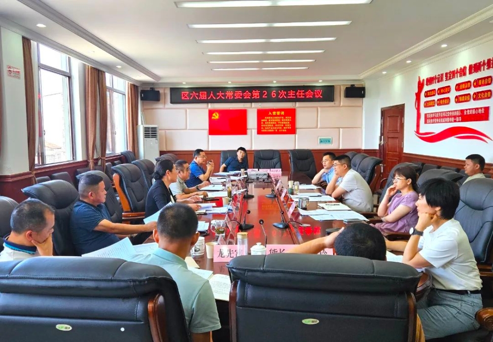 8月21日,我区第六届人大常委会第26次主任会议召开,区人大常委会主任、党组书记罗遥,区委常委、常务副区长沈澍,区委常委、副区长方腊初,区人大常委会副主任丰为民、陈可娟、朱旗、廖钶珉,副区长周振、张洁参加。