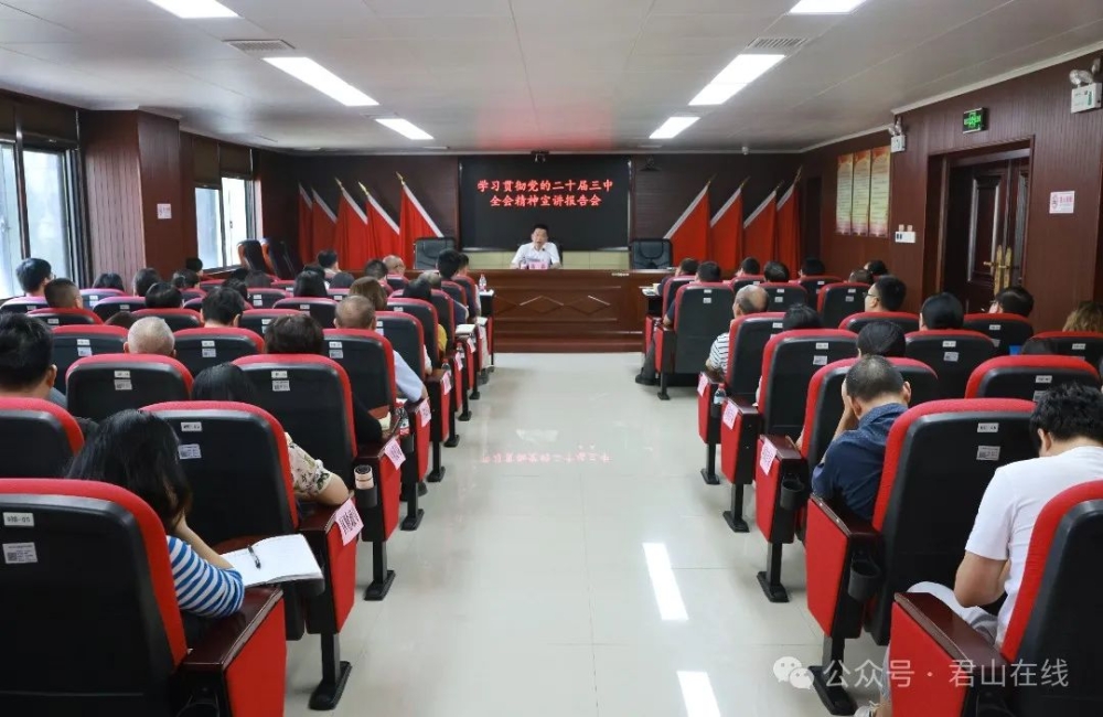 9月25日,区委副书记、区长陈淼在区财政、审计系统宣讲党的二十届三中全会精神,区政府办主任许四海及区经研中心、区财政局、区审计局全体在职干部参加。