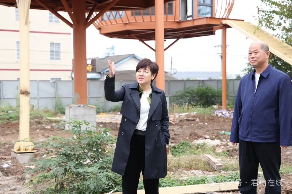 ▲雷欣查看采桑湖民宿酒店建设情况。竺芳梓 摄