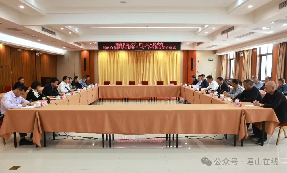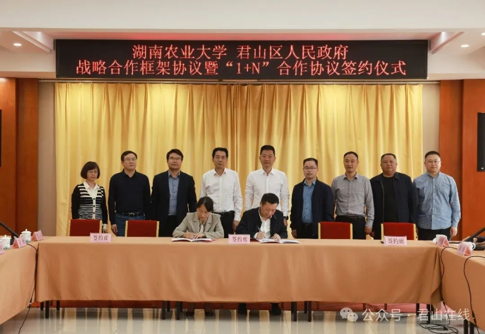 △11月12日,君山区人民政府与湖南农业大学战略合作框架协议暨“1+N”合作协议签约仪式举行。张颖 摄