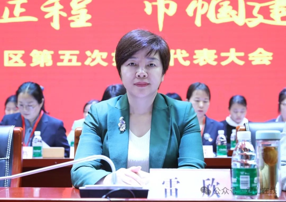 11月15日,区委书记雷欣出席君山区第五次妇女代表大会并讲话,市妇联党组书记、主席喻飞跃受邀前来指导,区委副书记、区委统战部部长田军主持,区领导陈可娟、张洁、杨再兴及全区各界正式妇女代表共143人参加。