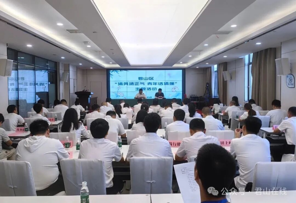 活动中,参会人员在《廉洁承诺书》墙签名,同时参观了君山区“不能腐”数字教育基地并观看了警示教育片。随后于政务中心四楼会议室开展“清风扬正气 青年话清廉”主题会。
