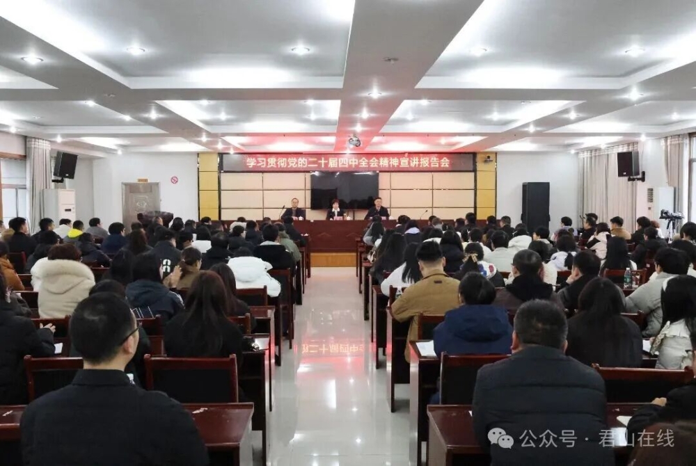 12月23日,区委书记雷欣来到区委党校,向2025年君山大讲堂学员,2025 年新录用公务员、选调生及“四海揽才”青年人才宣讲党的二十届四中全会精神。区委常委、区委组织部部长吴旺兴,区委常委、区委办主任易俊良参加。