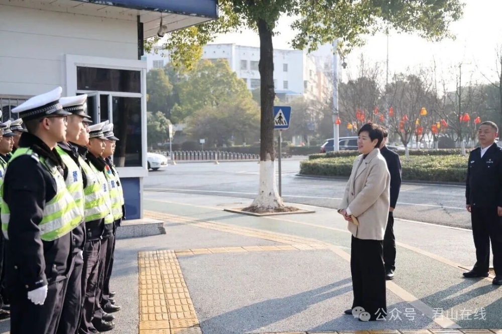 随后,雷欣来到挂口交警岗亭,看望慰问正在执勤的公安交警。她高度赞扬了广大交警在过去一年里为保障道路交通安全畅通所付出的努力。她强调,春节期间人流车流激增,保畅通、保安全的任务更加繁重,希望大家继续发扬优良作风,加强对商场、景区等重点路段的管控,全力为人民群众欢度佳节创造安全、有序、畅通的道路交通环境。