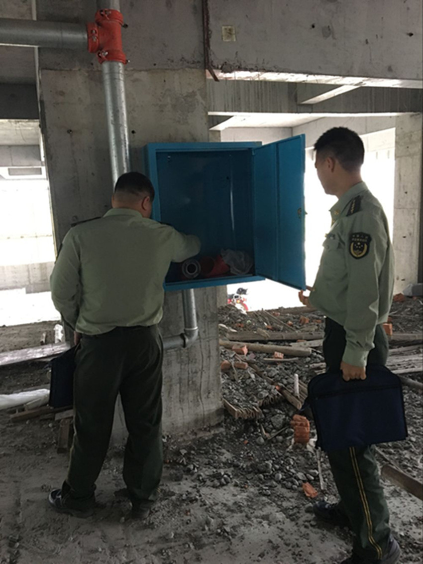 检查中,监督检查人员重点检查了在建工程是否依法办理了消防审核、备案手续,是否存在未经消防审核或审核不合格擅自施工的现象;在建工程工地是否符合消防安全要求,员工集体宿舍是否存在违章用火用电用气现象,工地消防设施、器材配备是否符合要求;工程使用的消防产品是否经过消防抽检合格等情况。检查中发现几处火灾隐患:一是施工现场未设置灭火器;二是室内消火栓未设置临时消防水带、水枪;三是施工现场消火栓内无水;四是未设置消防安全制度;五是消防通道未设置回车场。针对这些火灾隐患,监督检查人员依法下发了《责令限期改正通知书》,要求限期内整改到位。
