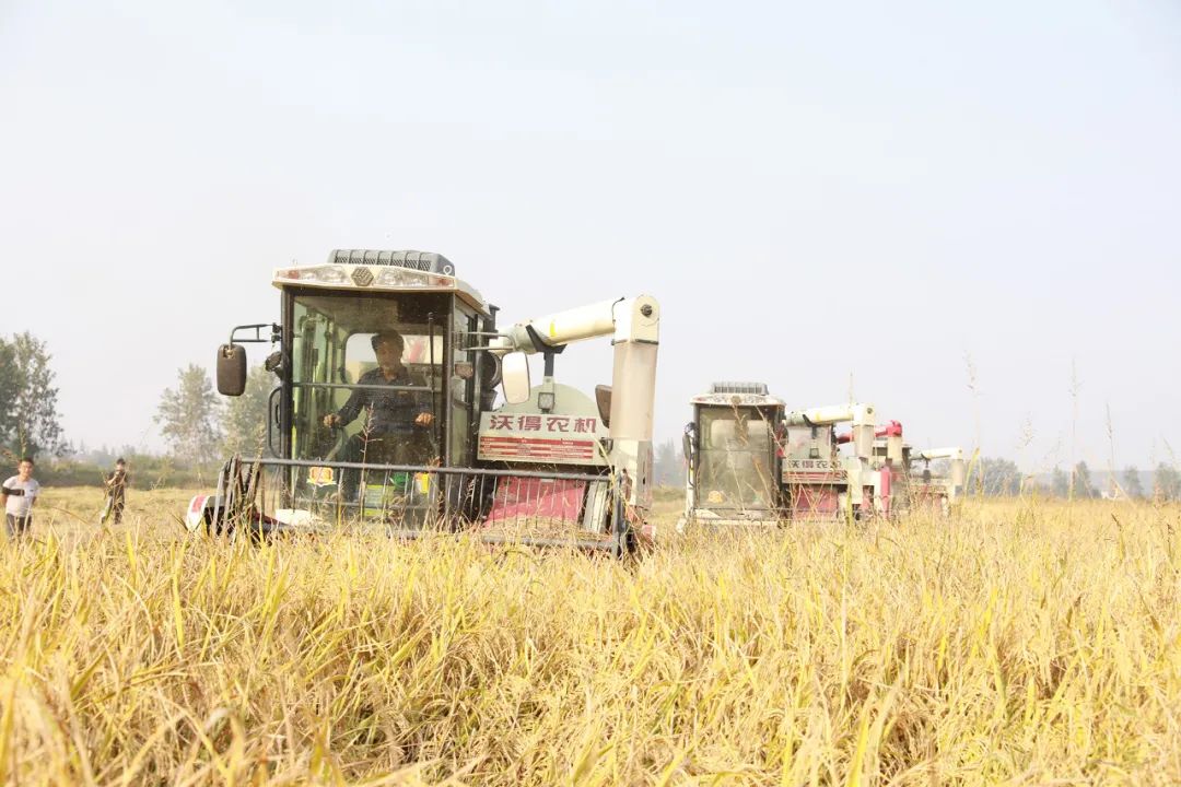 走进许市镇志华农机合作社优质稻种植基地,现场机器轰鸣,一排排收割机正开足马力有序作业,金灿灿的稻谷伴随着农机手们丰收的喜悦,被快速收割入车,田间一派繁忙的收获景象。