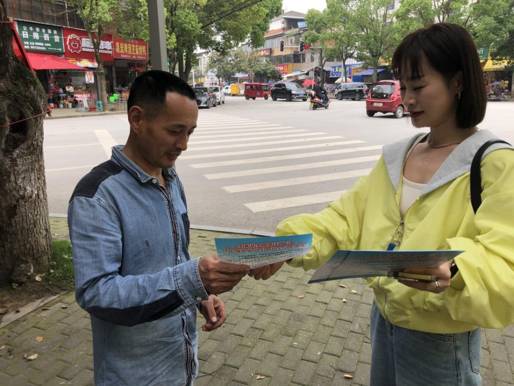 在广兴洲镇、柳林洲街道,工作人员向群众现场发放世界地球日宣传资料、讲解世界地球日宣传海报展牌内容,增强社会公众珍惜资源、保护环境的生态意识。