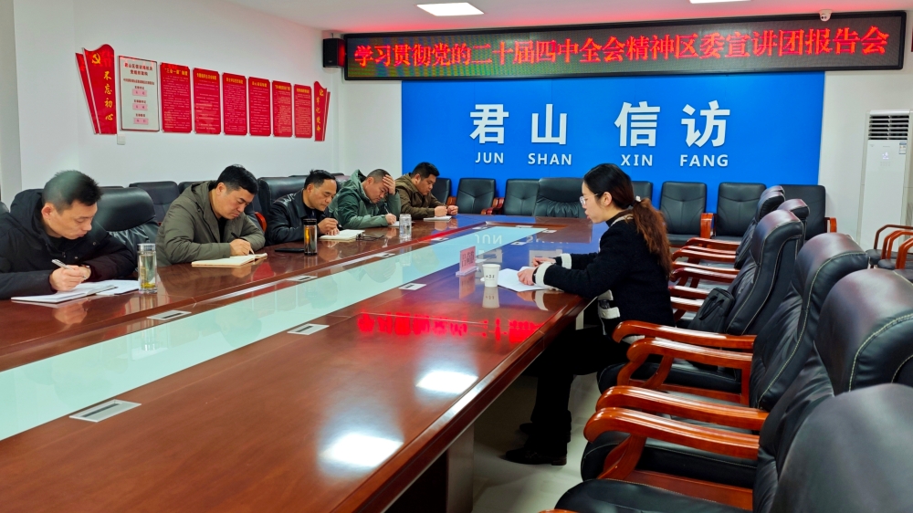 瞿强民在主持时指出,深入学习宣传贯彻党的二十届四中全会精神,是当前和今后一个时期的重大政治任务。一要学懂弄通,学深悟透,切实把思想和行动统一到全会精神上来。二要学以致用,把学习全会精神与学习贯彻习近平总书记关于信访工作的重要论述结合起来,蹄疾步稳抓好信访工作,为君山区信访形势持续好转作出新的更大贡献。三要学有所获,对明年信访工作继续跻身全市第一方阵充满信心,不断提升运用法治方式解决群众信访诉求的能力水平,以法治化成效夯实信访业务水平,确保明年我区信访工作实现良好开局。