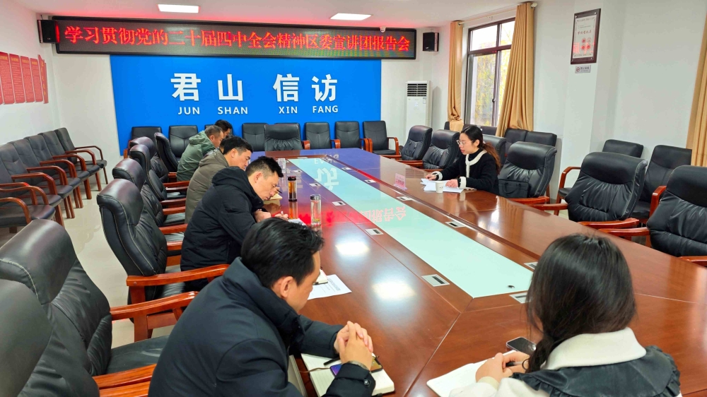 宣讲会上,吕荷静紧密围绕学习贯彻习近平总书记在党的二十届四中全会上的重要讲话精神和全会《建议》,阐明了党的二十届四中全会的重大意义,阐释了“十四五”时期我国发展取得的重大成就和“十五五”时期经济社会发展环境,解读了“十五五”时期经济社会发展的指导方针、主要目标、战略任务、重大举措和根本保证。报告紧密结合君山实际,对于准确把握党中央对经济社会发展特别是推进信访工作法治化、推动矛盾纠纷化解等一系列重大部署,提供了精准指导。