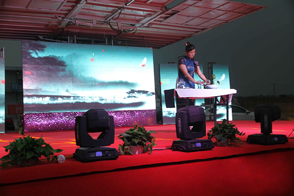一首由该村村组干部合唱的《团结就是力量》拉开了晚会序幕,广场舞《撸起袖子加油干》把晚会推向了高潮,精彩的表演赢得了观众们一阵阵的热烈掌声。此次演出以移风易俗树新风、共建美好家园为主要内容,节目形式多样,内容丰富多彩,贴近群众生活,有合唱、朗诵、广场舞、茶艺表演等,演出人员都是来自本村的群众,他们自编自演。整个演出活动不仅给濠河村村民们带来了欢乐,更是通过文化的力量,把移风易俗文化送到百姓心中,引导广大群众树立孝悌和睦家风,倡导婚丧嫁娶新风,营造文明和谐乡风,齐心协力共建美好家园。