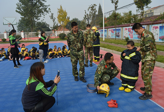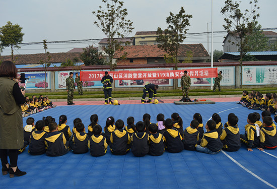 为使师生们正确掌握扑灭初期火灾的方法,中队官兵还讲解了干粉灭火器灭火的基本常识,并点燃火盆演示了灭火器正确灭火的操作流程,部分师生参与了实践操作。消防战士适时地为小朋友们讲解平时要怎样防火、怎么逃生、如何保护自己、着火了怎么报警等等。通俗易懂的语言,小朋友听得聚精会神,还不时提出一些小问题让战士解答。这种寓教于乐的方式,不知不觉让小朋友在轻松愉快中了解到了基本的消防常识。“以后要是遇到火灾就不会害怕了。”许多小朋友在体验后兴奋地说。