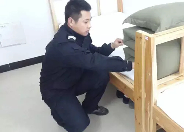 早上6:00,大多数人还在沉睡中,君山区巡特警大队的寝室却已经收拾一新。巡特警队员们一天的生活从整理内务开始。