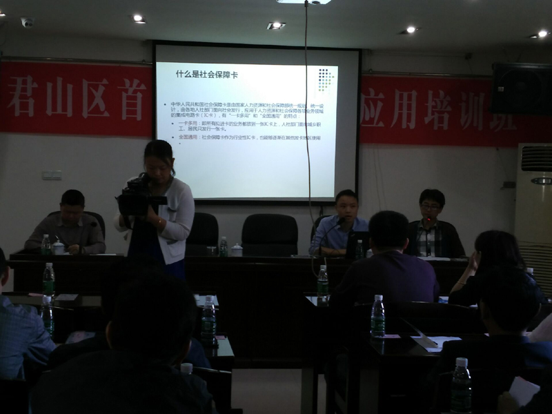 为认真贯彻落实好省人社厅和省联社“社保全覆盖、服务一卡通”的目标要求,推动我区社会保障卡应用规范,加快实现专业化社会保障卡服务队伍,切实提高社会保障卡使用率。根据《关于农垦农业职工养老保险退休人员社会保障卡发放工作的通知》(岳君人社发[2016]11号)文件精神,我局于5月11日至13日举办首届社会保障卡培训班,此次培训对象为全区社会保障卡系统工作人员68人,主要培训内容为社会保障卡介绍、PSAM卡使用注意事项、卡挂失及问题卡的处理、智慧人社手机APP应用与实际操作示范、社会保障卡中心端操作指导等,培训班开班仪式由人社局副局长熊高富主持,副局长刘持明做了开班讲话,授课老师有市信息中心相关领导及创智公司工程师。