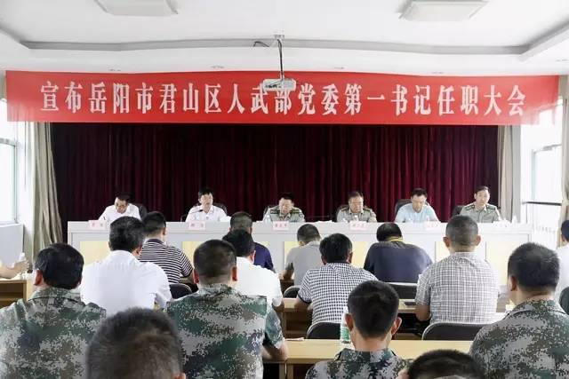 9月21日,我区召开区人武部党委第一书记任职大会,岳阳军分区党委常委、司令员黄大军,岳阳军分区党委常委、副司令员胡小合,区委书记谢胜,区委常委、副书记白再兴,区委常委、区政府党组副书记罗遥,区委常委、人武部部长彭志展以及国动委成员单位主要负责人,各镇(办、场)党(工)委书记,人武部全体官兵职工和全区基层专武干部参加。胡小合宣读了岳阳军分区党委关于谢胜同志任岳阳市君山区人民武装部党委第一书记的命令。会议由彭志展主持。