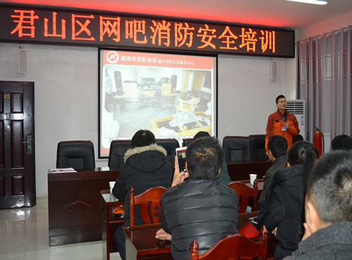 为切实提高全区网吧消防安全管理水平,提升员工消防安全“四个能力”,11月23日,君山消防大队特邀湖南省消防协会李荣教官对全区所有网吧业主开展消防安全培训,消防大队大队长金三石到会并讲话。