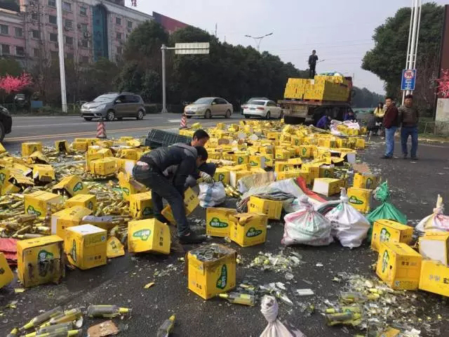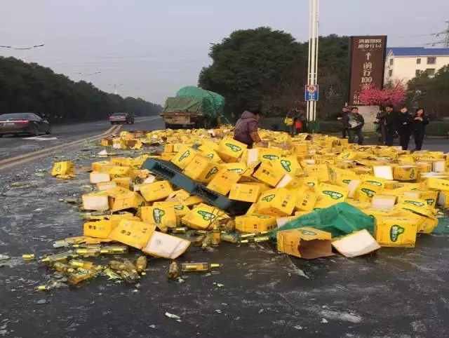 900箱啤酒散落一地,马路酒气冲天