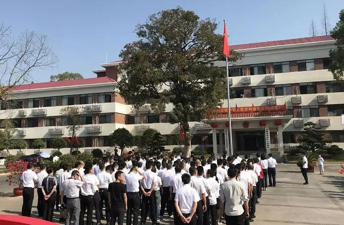 上午9时28分,旗手踏着铿锵有力的步伐,护卫着国旗豪迈地走向升旗台。伴随庄严的国歌,五星红旗徐徐升起,全体人员肃立,向国旗行注目礼,豪迈地唱响《义勇军进行曲》,抒发着对伟大祖国母亲无比的崇敬和挚爱之情。