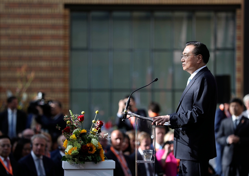 当地时间10月16日中午,李克强总理与荷兰首相吕特在此共同出席中国-荷兰经贸论坛并发表即席演讲。