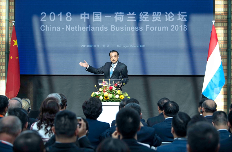 掌声平息后,李克强紧接着阐释道,在当前世界经济纷繁复杂的形势下,中荷两国应共同维护自由贸易,反对单边主义和贸易保护主义。