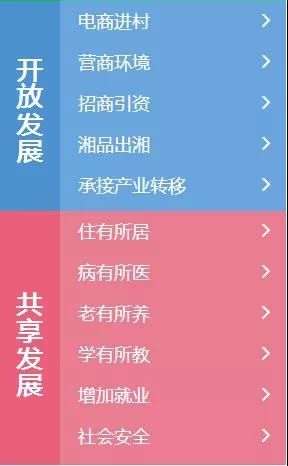科技创新、高质量发展、智能制造、产业升级、人才引进、互联网+政务服务、精准脱贫、乡村振兴、军民融合、文旅融合、项目建设、食药安全、污染防治、资源节约、河湖保护、绿色交通、电商进村、营商环境、招商引资、湘品出湘、承接产业转移、住有所居、病有所医、老有所养、学有所教、增加就业、社会安全