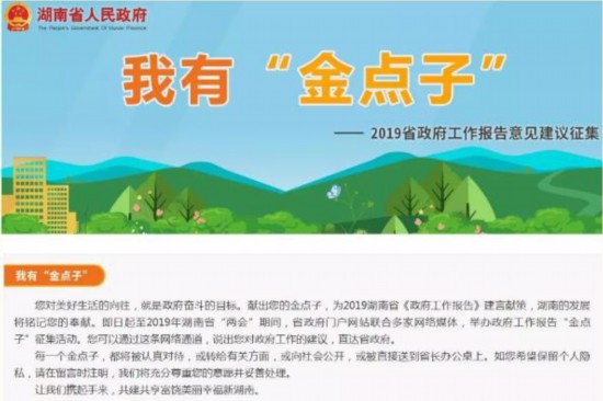 以公开方式引入公众参与,征求网民对政府工作报告的意见建议,这在湖南省政府网站还是第一次。