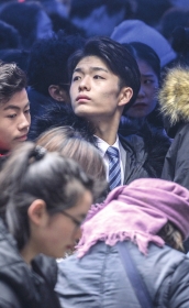 ▲2月13日,湖南2019年省外高校艺术类专业校考现场,考生在寒风中排队等待进入考场。组图/记者辜鹏博实习生张云峰