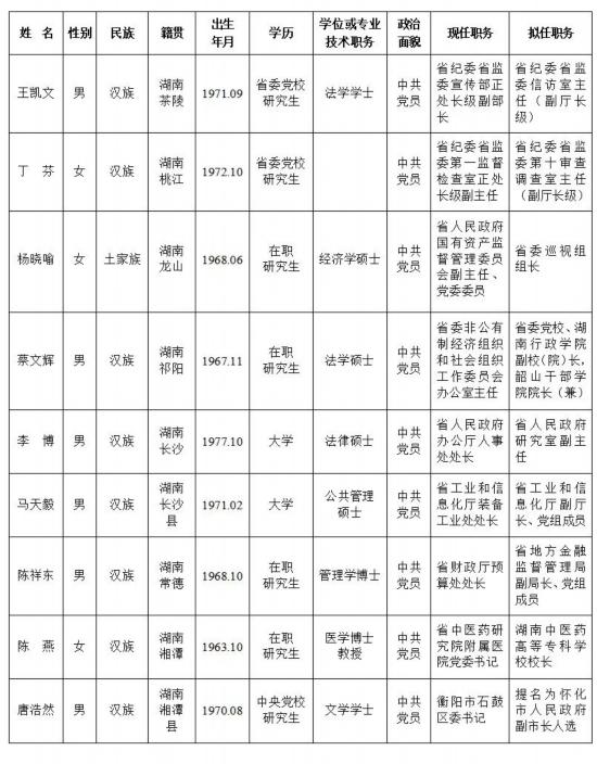 9名湖南省委管理干部任前公示